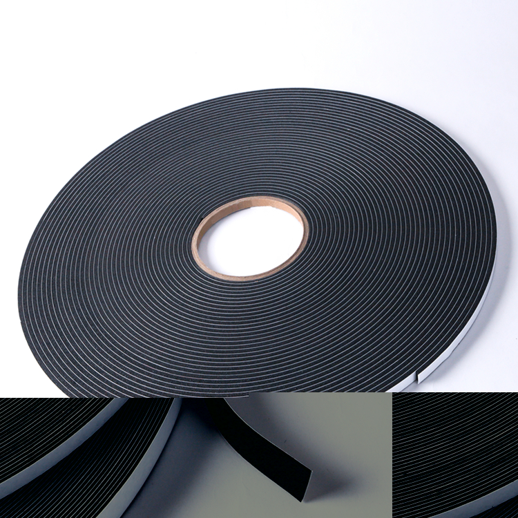 Medium density PVC foam tape is an excellent choice for exterior weather sealing and also performs well in acoustic or vibration damping solutions. Available with adhesive on one side or both sides depending on customer needs. Density: 250±30kg/m3; Thick